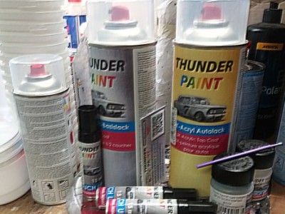 Oggigiorno, è quasi possibile abbinare perfettamente il colore della vernice dell'auto : vernici acriliche, metallizzate e perlate in bombolette spray sono disponibili per tutti i modelli. Ottenere un risultato di alta qualità con una sfumatura di colore richiede almeno un po' di pratica. Se non si ha esperienza, si consiglia di dipingere prima su un oggetto di prova, come un vecchio frigorifero o una lavatrice.