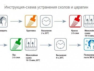 4. I graffi più profondi e i danni alla vernice richiedono il ripristino di tutti gli strati di vernice: primer, vernice e strato di vernice.